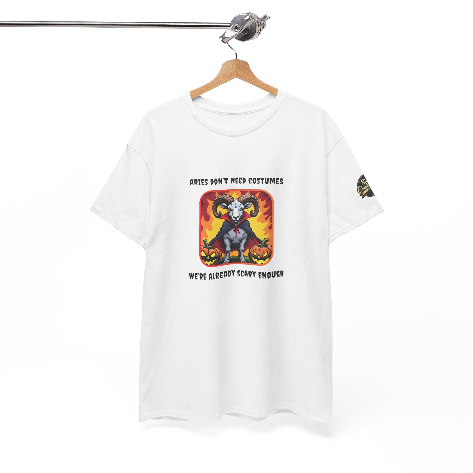 Aries Halloween Heavy Cotton Tee - Perfect for Men, Everyday Wear, Halloween Costume Alternative, Aries Gift