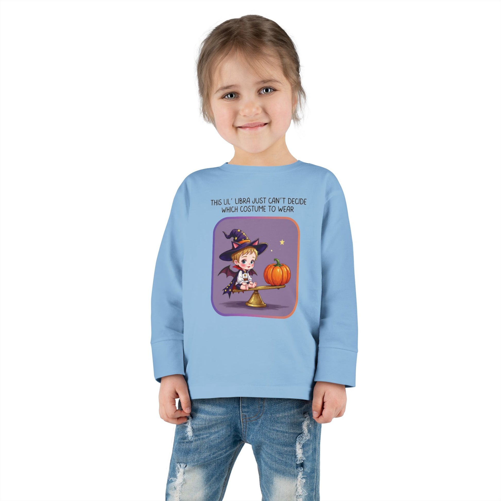 Halloween-themed Libra Long Sleeve Tee - Libra Fashion for Kids, Spooky Season Outfit, Boo-tiful Gift, Trick or Treat Shirt, Zodiac Gift