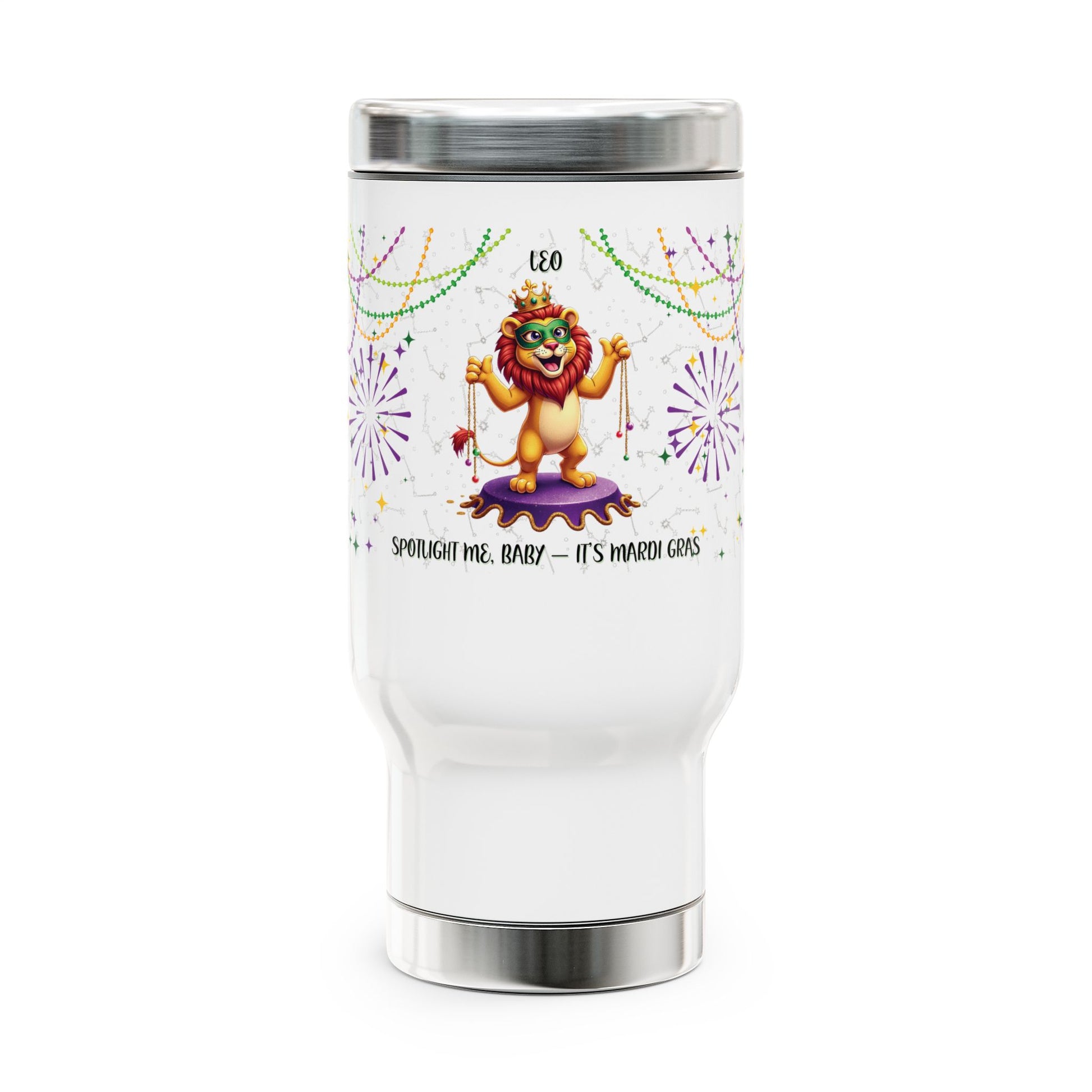 Leo Stainless Steel 14oz Travel Mug - Mardi Gras Design