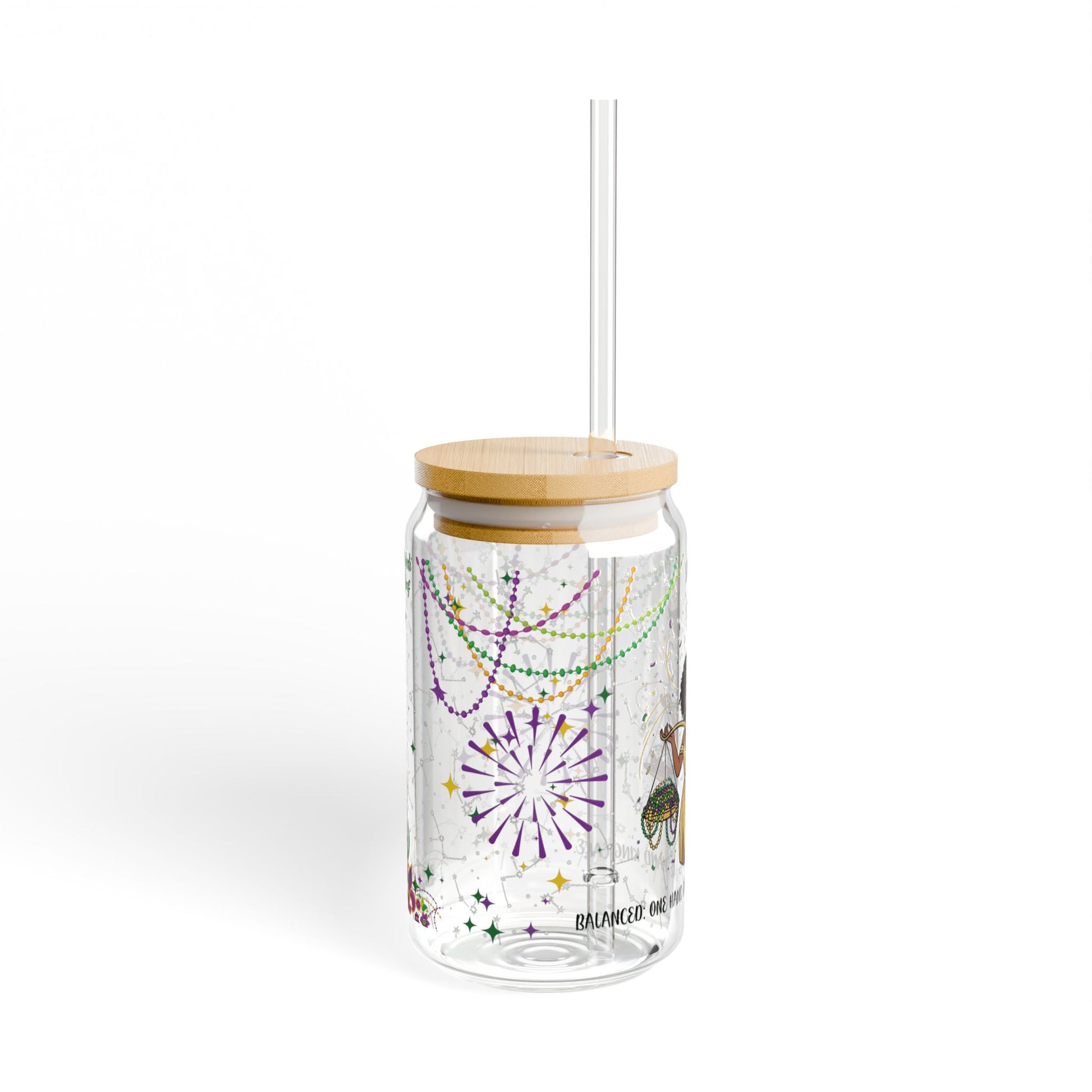 Libra Sipper Glass 16oz - Mardi Gras Design