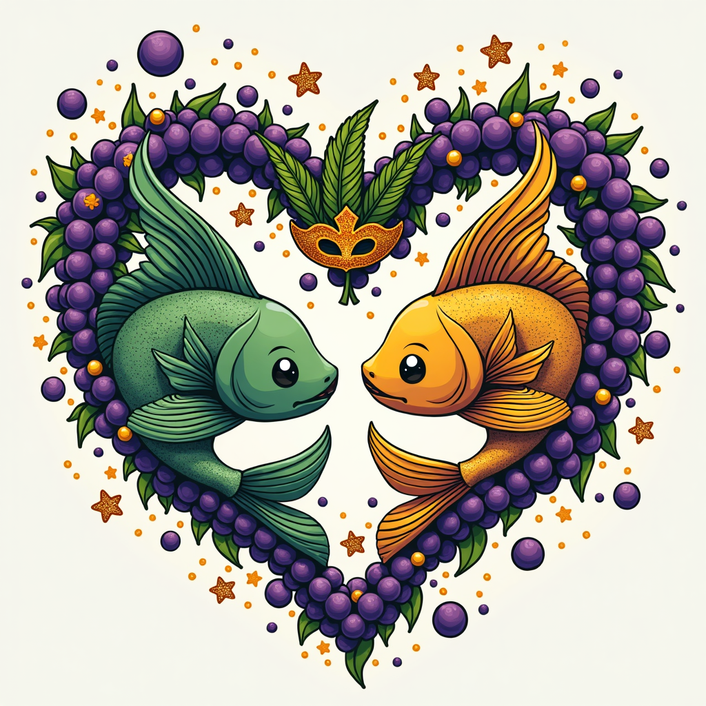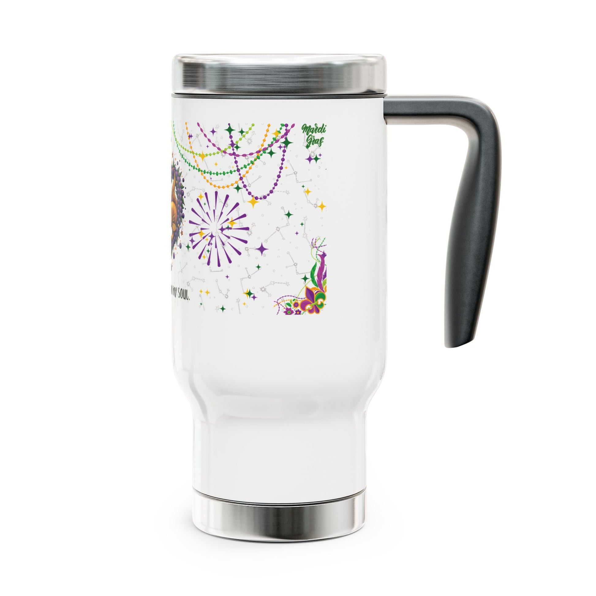 Pisces Stainless Steel 14oz Travel Mug - Mardi Gras Design