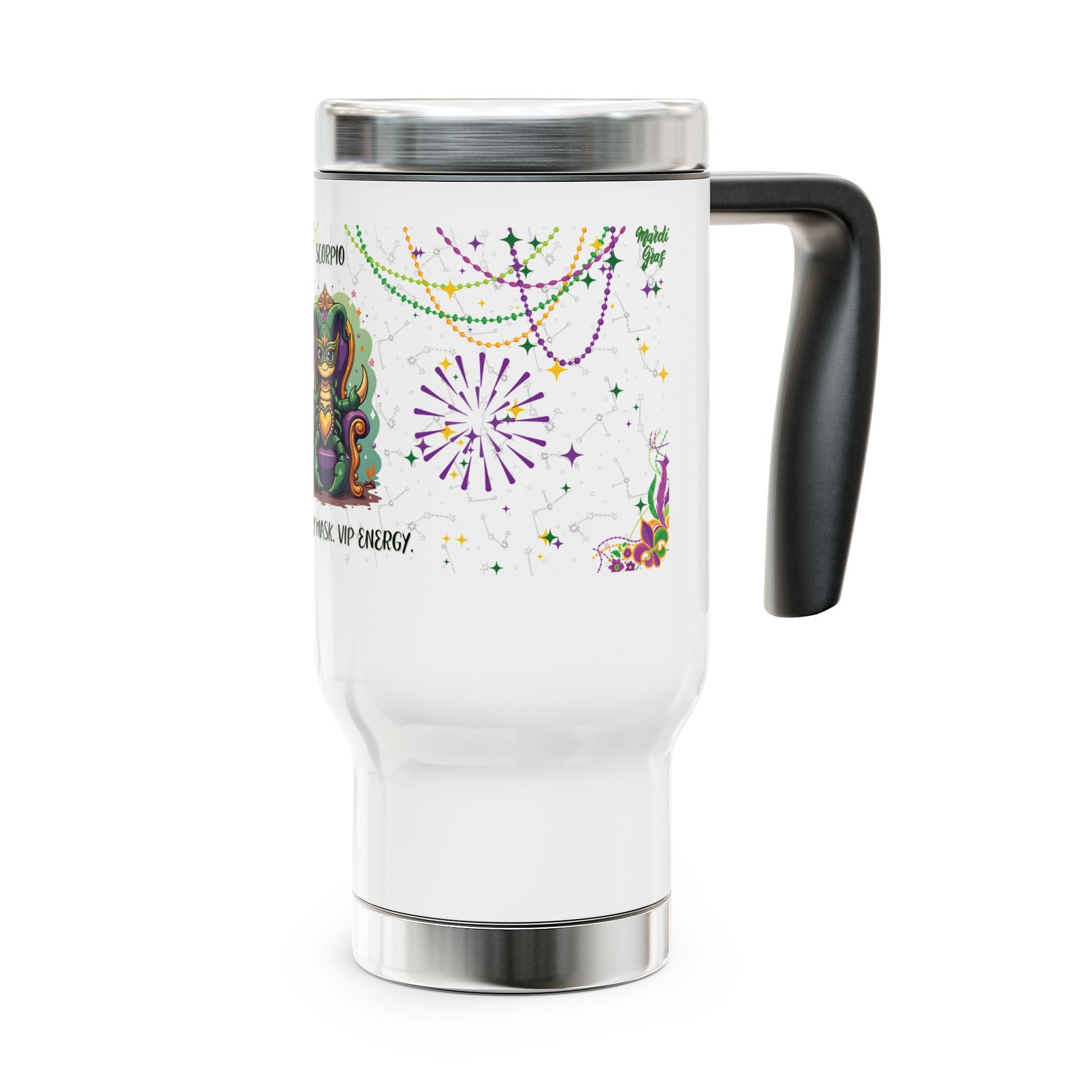 Scorpio Stainless Steel 14oz Travel Mug - Mardi Gras Design